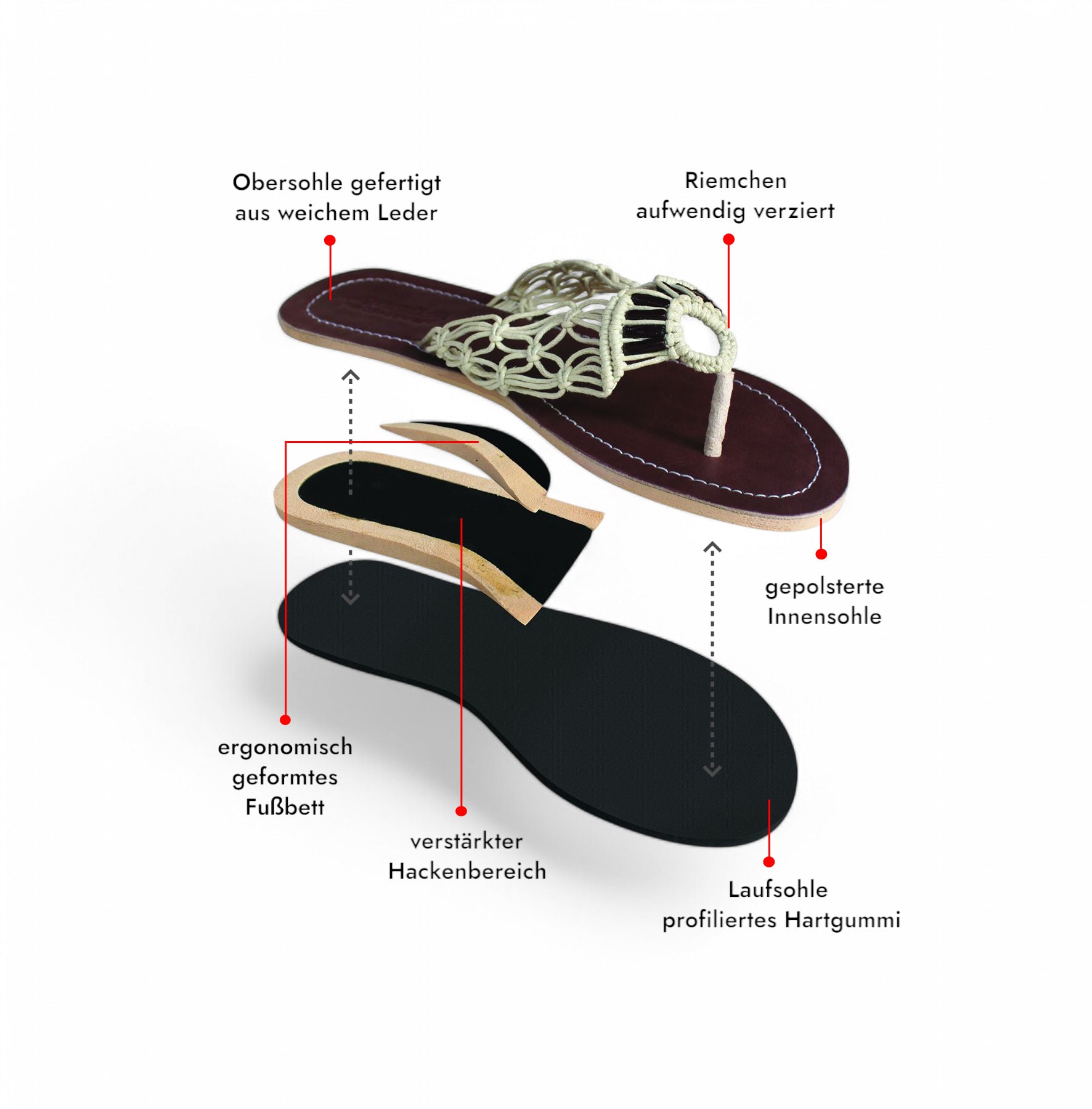 Unsere handgefertigten Leder-Flipflops aus Bali verbinden natürlichen Stil mit hohem Tragekomfort. Leicht, elegant und ideal für Strand, Stadt und Alltag.