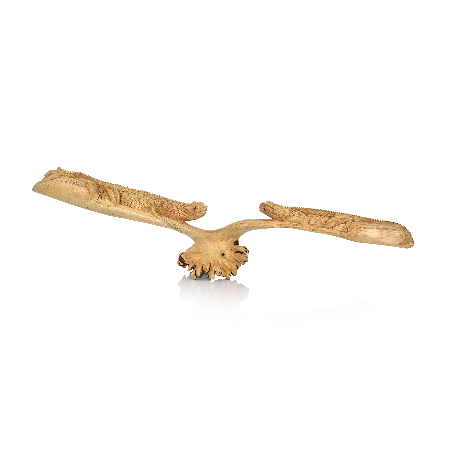 2 handgeschnitzte Holz-Echsen - Kunstvolle Deko mit natürlichem Charme