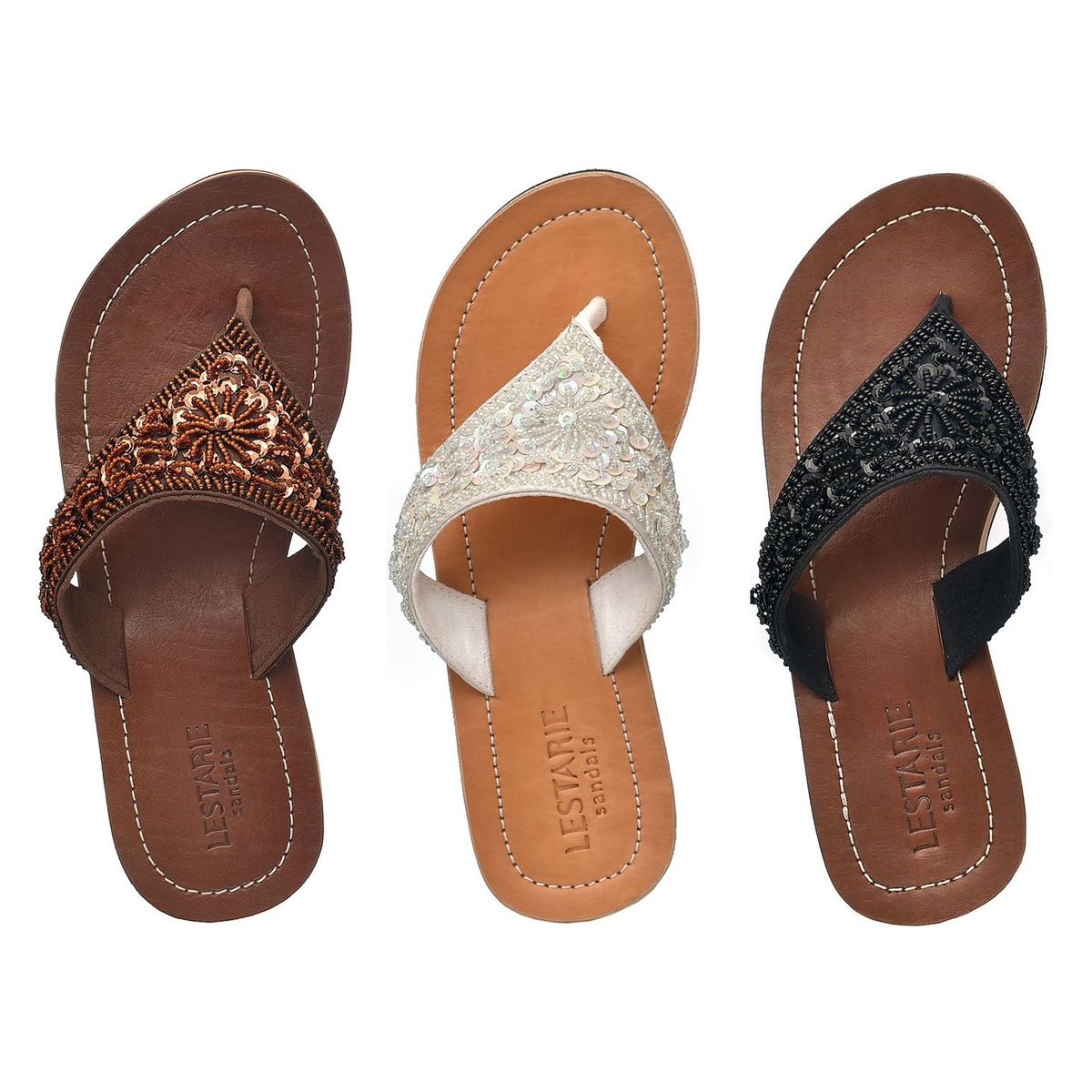 Damen Leder Sandale mit Perlen