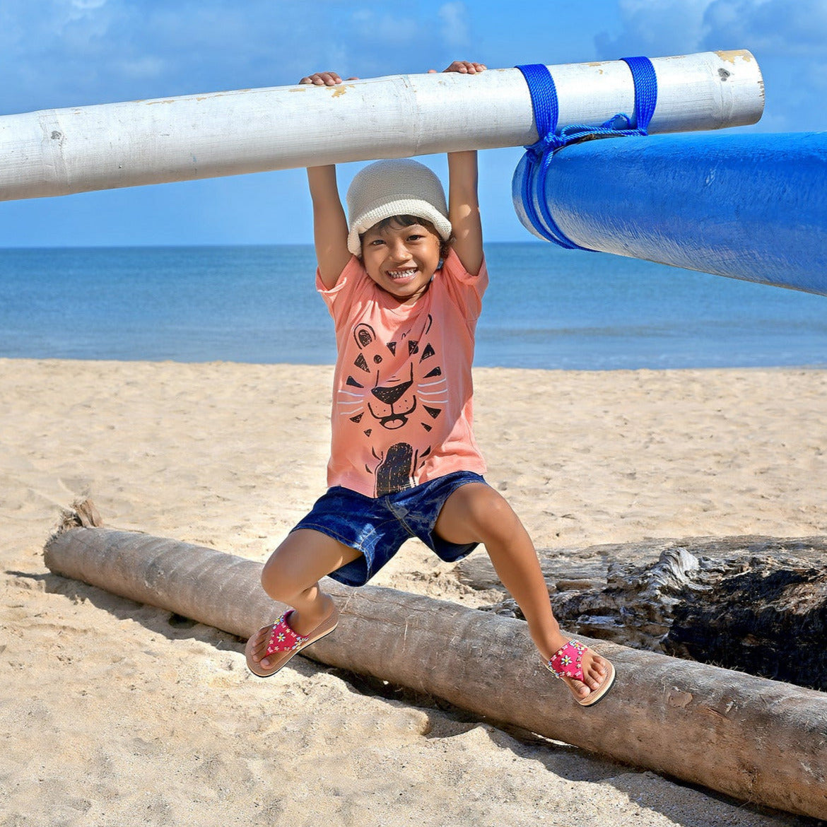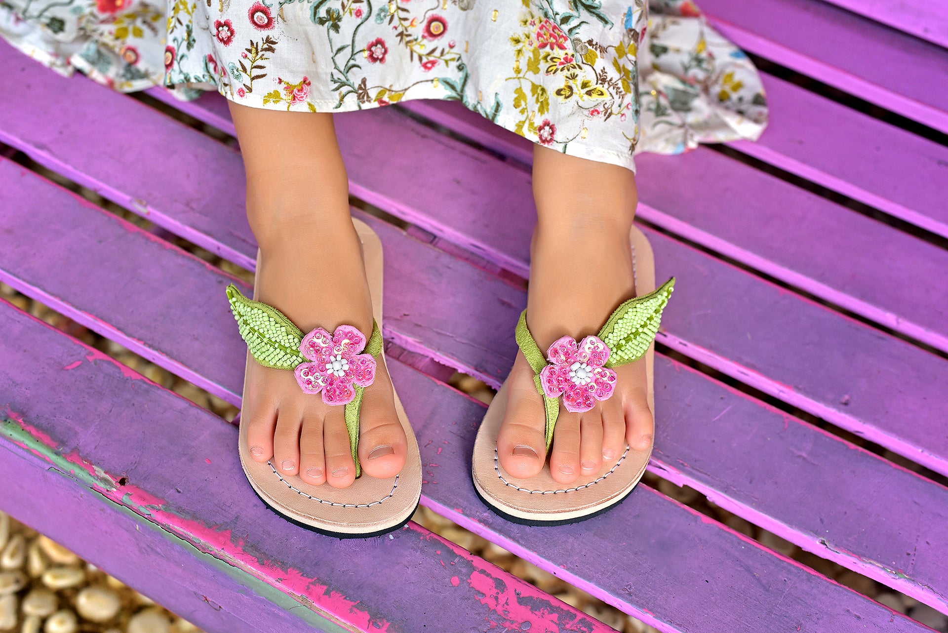 Zauberhafte Kinder Flipflops aus Leder – handgefertigt auf Bali.