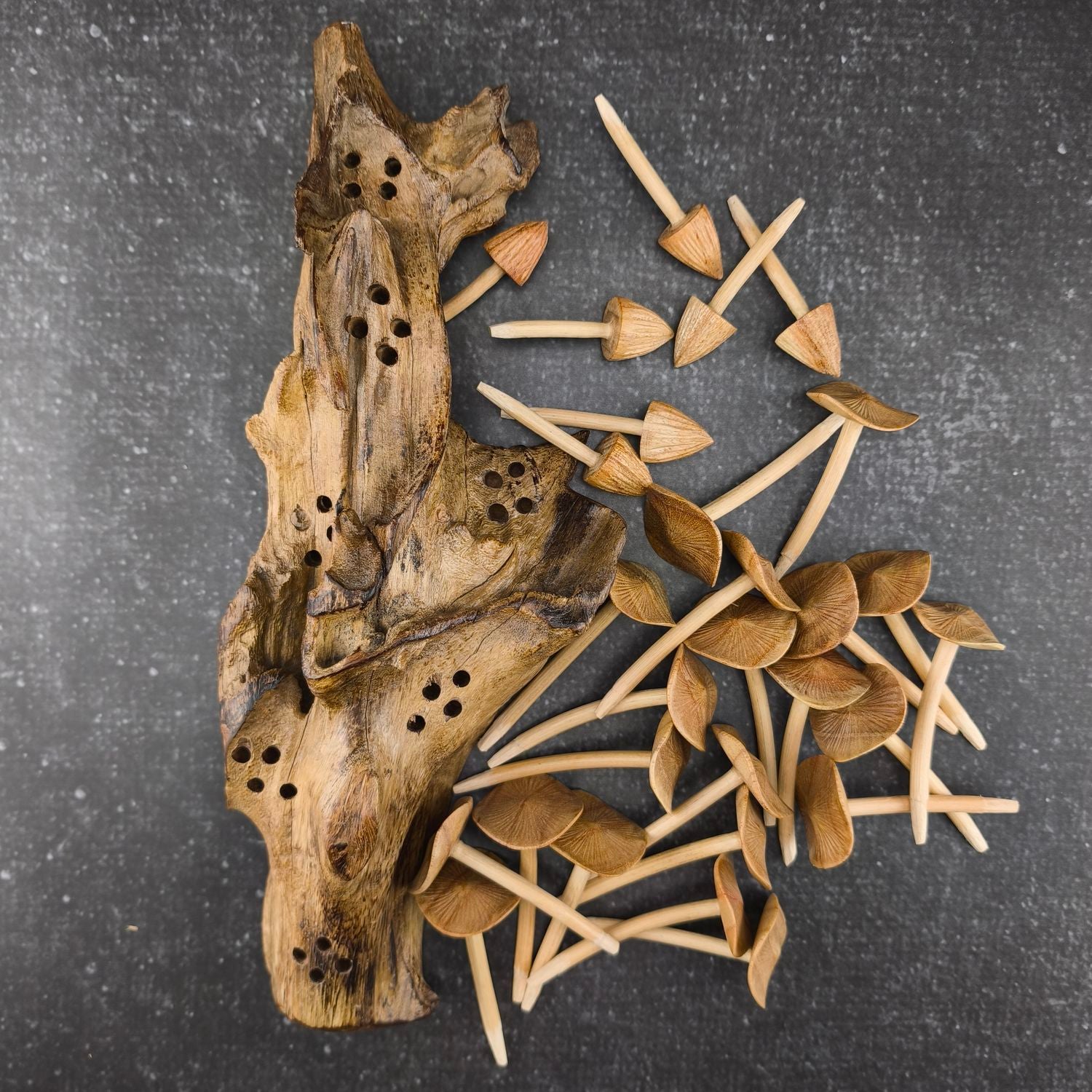Handgeschnitztes 28er Pilzset aus Jempinisholz – natürliche Deko & Geschenk für Pilzliebhaber