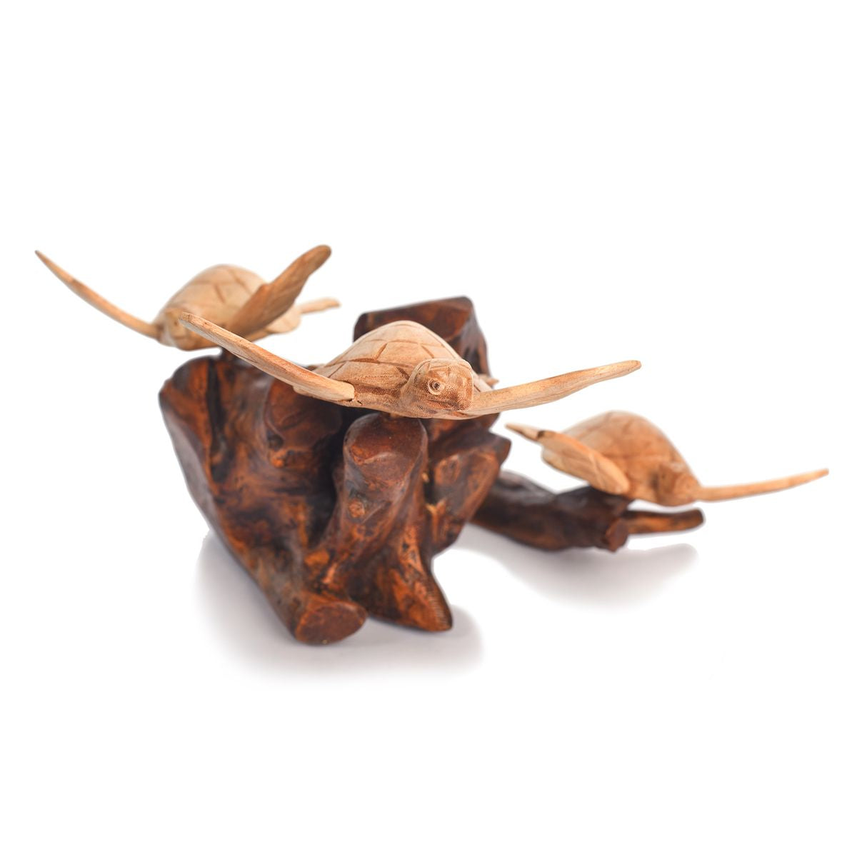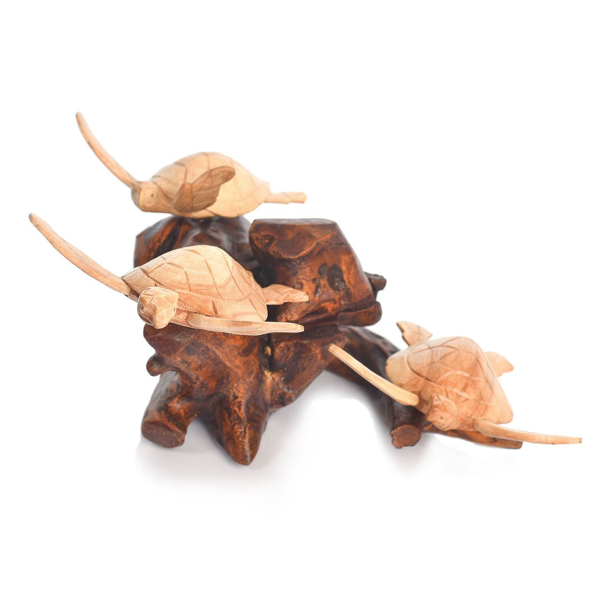 Dieses kunstvolle Set aus drei handgefertigten Holzschildkröten bringt natürlichen Charme in Ihr Zuhause. Jede Schildkröte wurde mit viel Liebe zum Detail aus hochwertigem Holz gefertigt und misst ca. 12 cm x 11 cm.