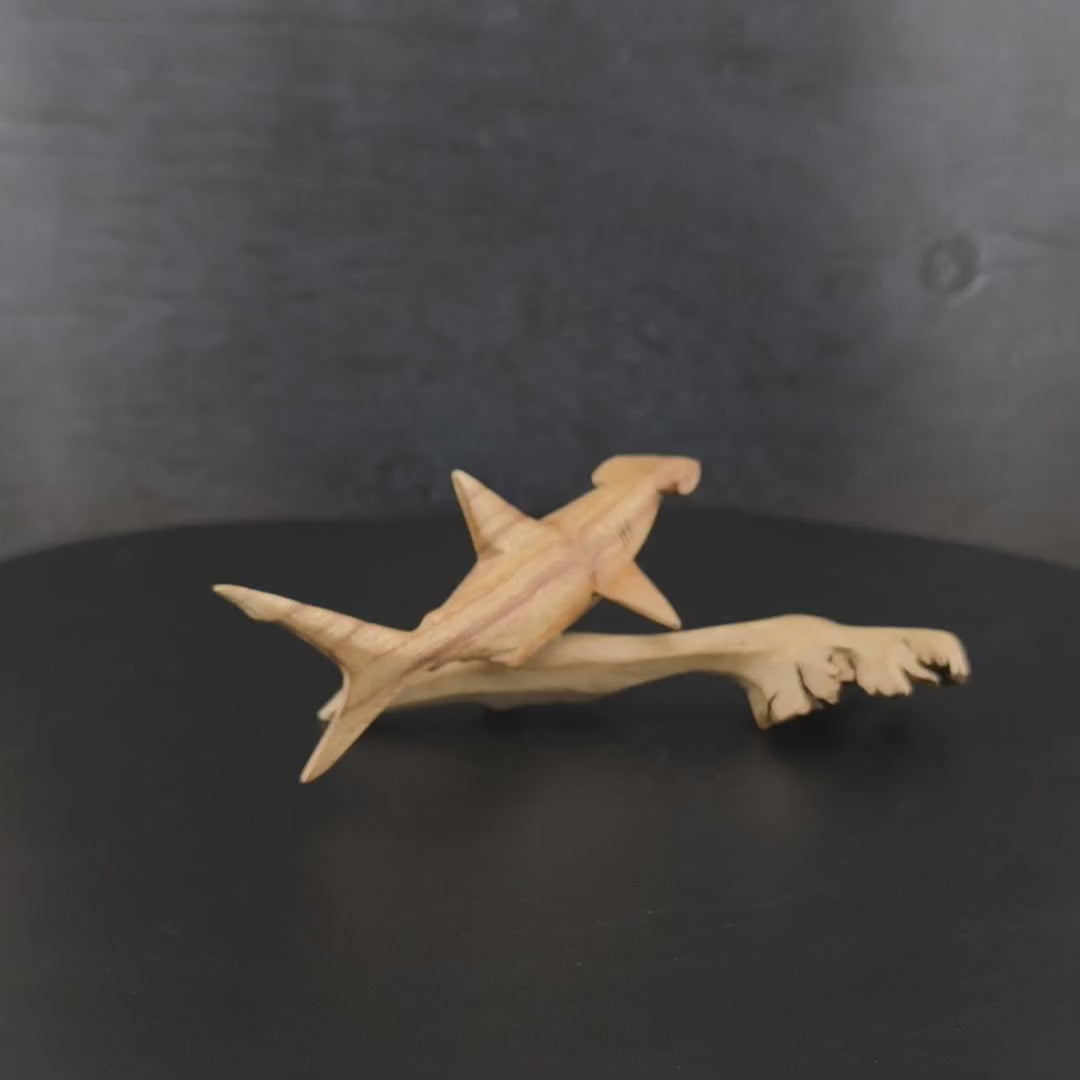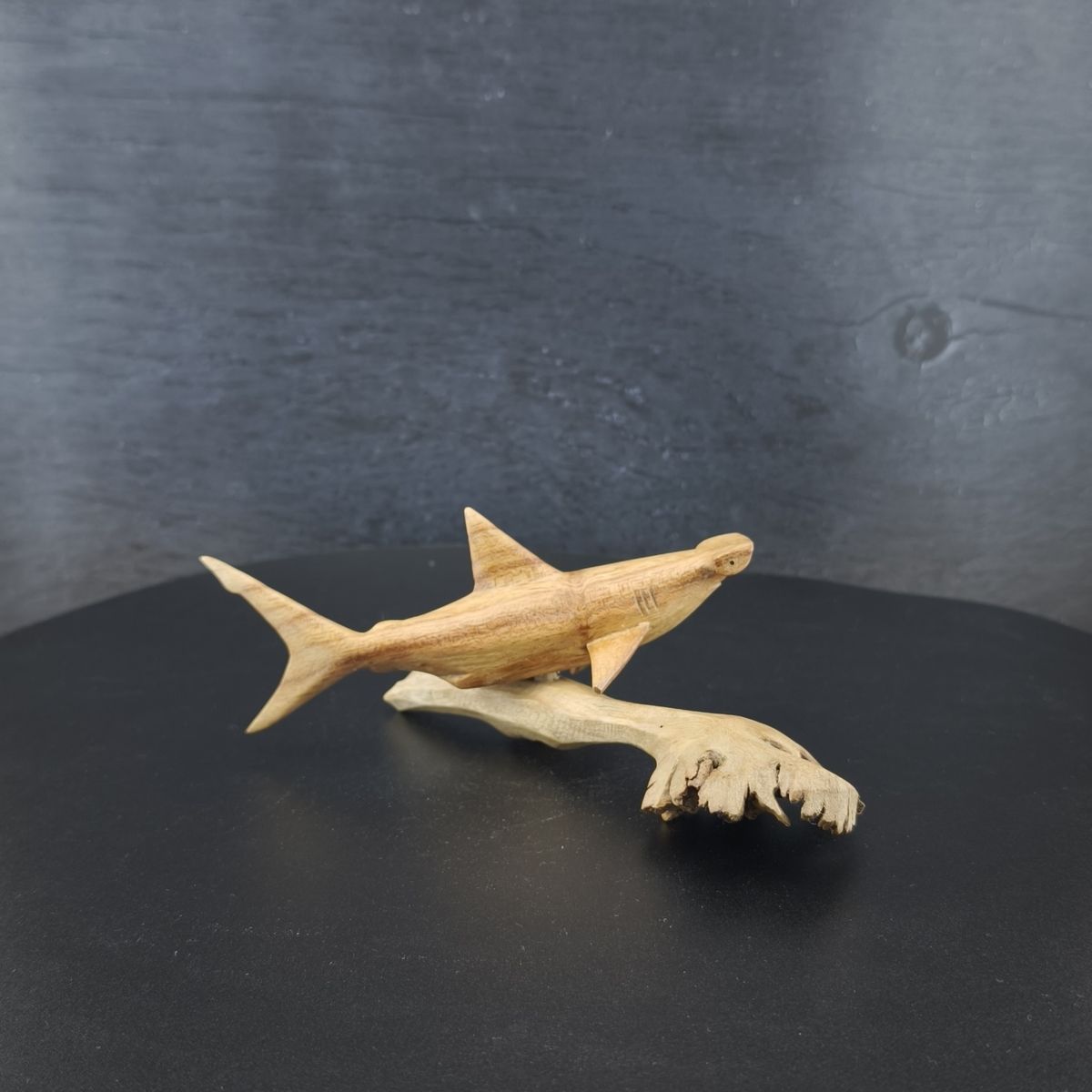 Handgeschnitzter Hammerhai aus Holz – detailreich gearbeitet, jedes Stück ein Unikat mit maritimem Charme.