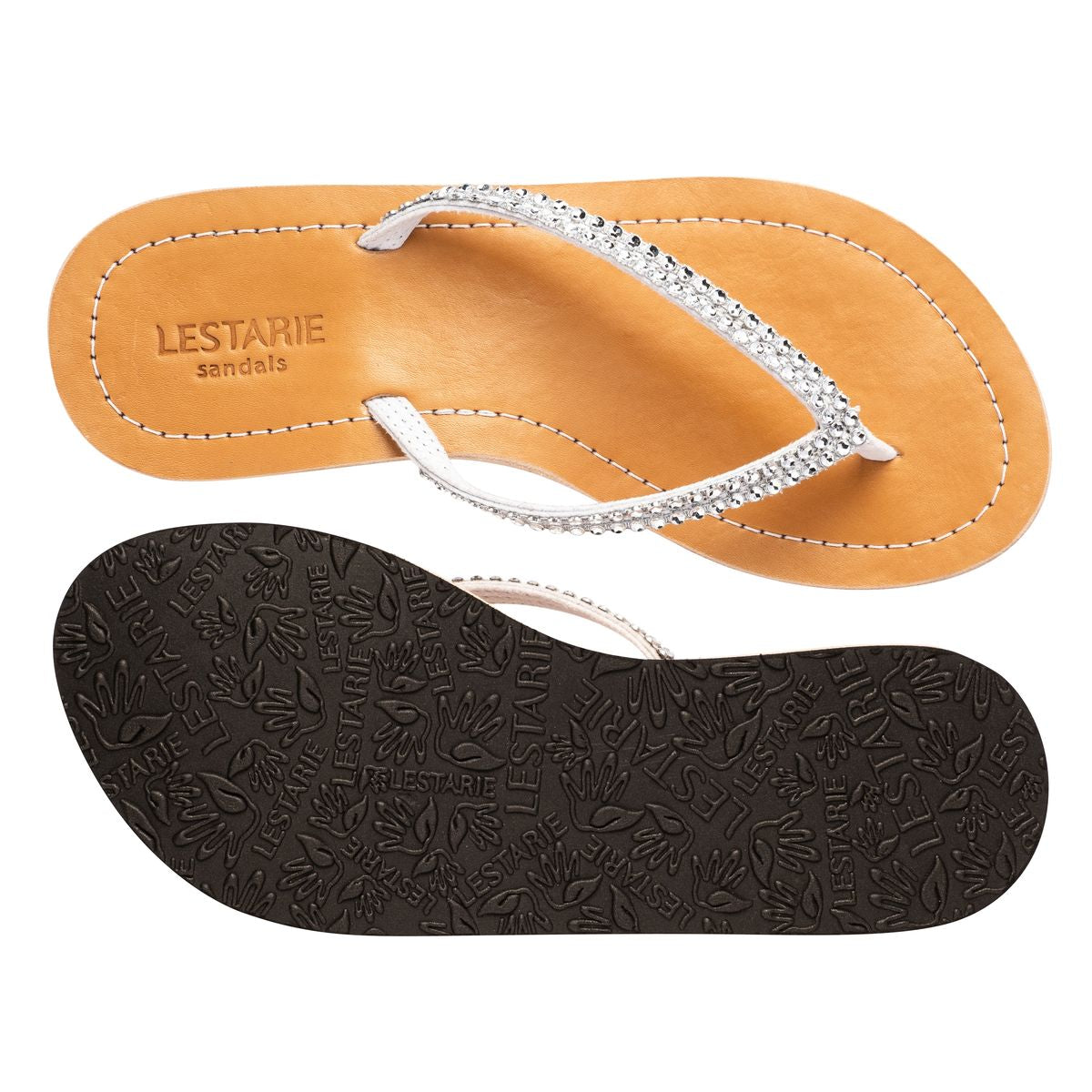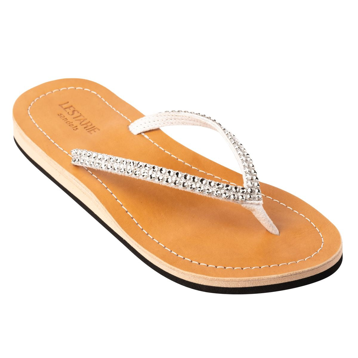 Ein edles Detail sind die filigranen Riemchen, die mit silberfarbenen Strasssteinchen verziert sind. Sie verleihen der Sandale einen Hauch von Eleganz und setzen funkelnde Akzente.