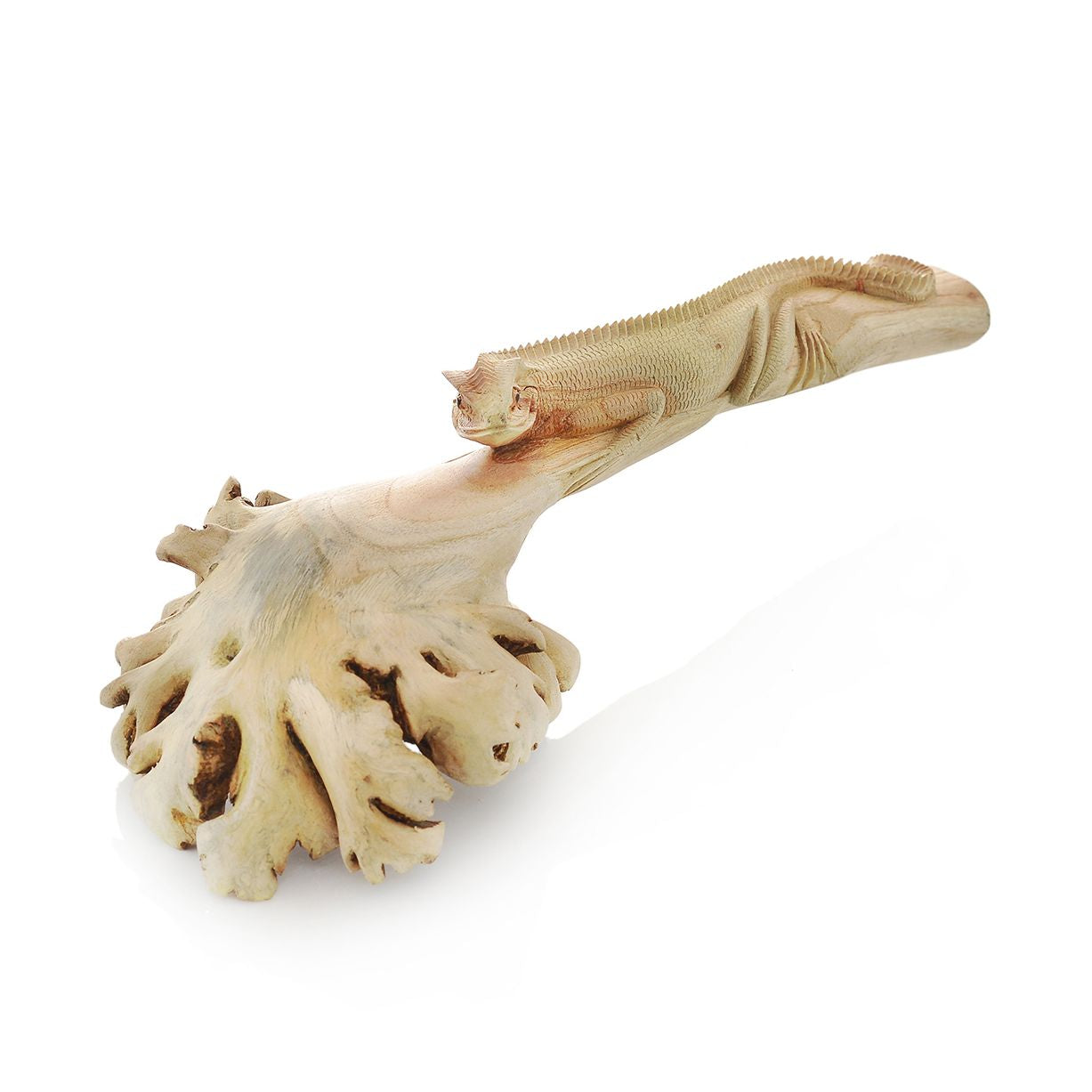 Diese beeindruckende handgeschnitzte Echse auf einem Baumast ist ein einzigartiges Kunstwerk, gefertigt aus hochwertigem Mango Holz.