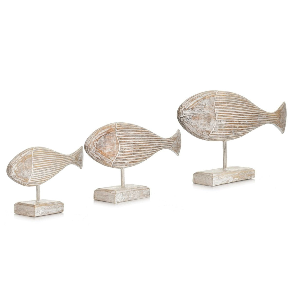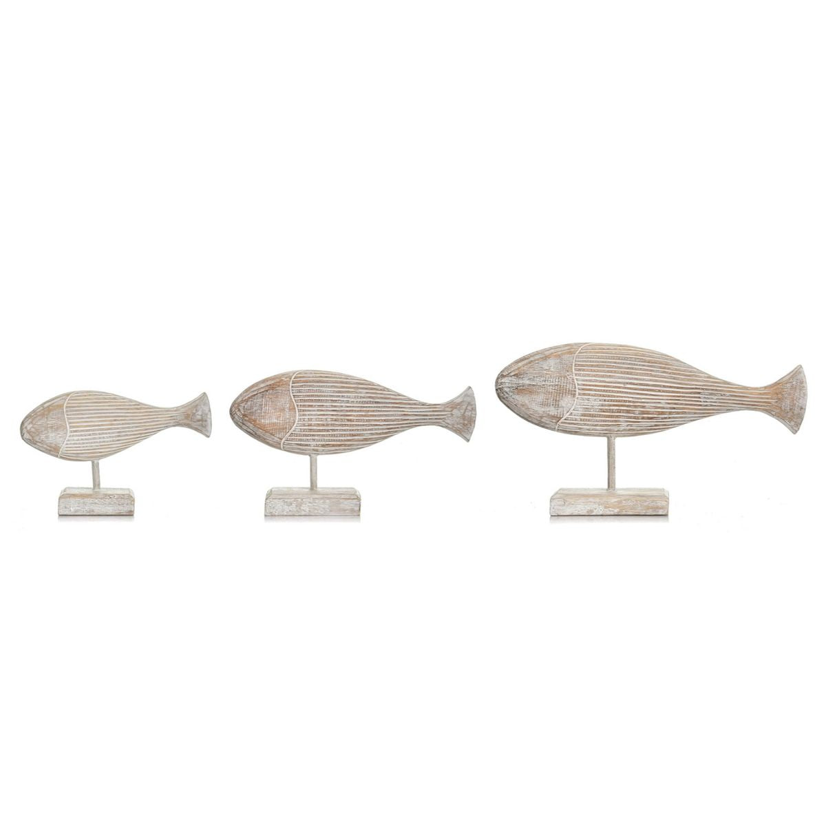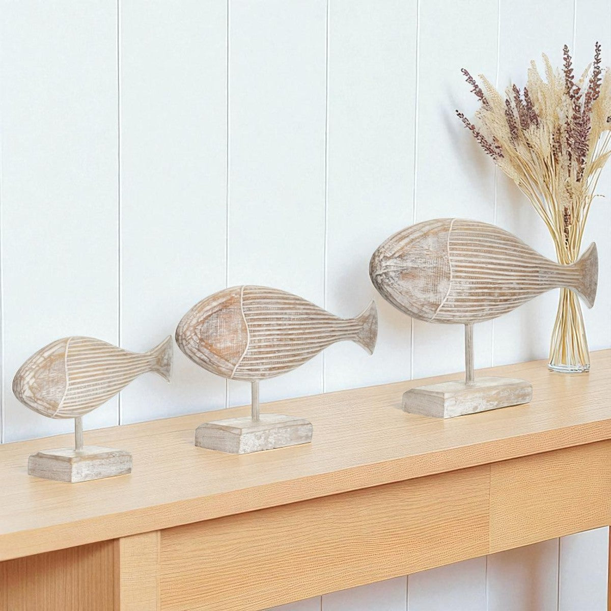 Dank der hellen Whitewash-Oberfläche und dem minimalistischen Design sind die Fische vielseitig kombinierbar und setzen in jedem Raum ein natürliches Highlight.