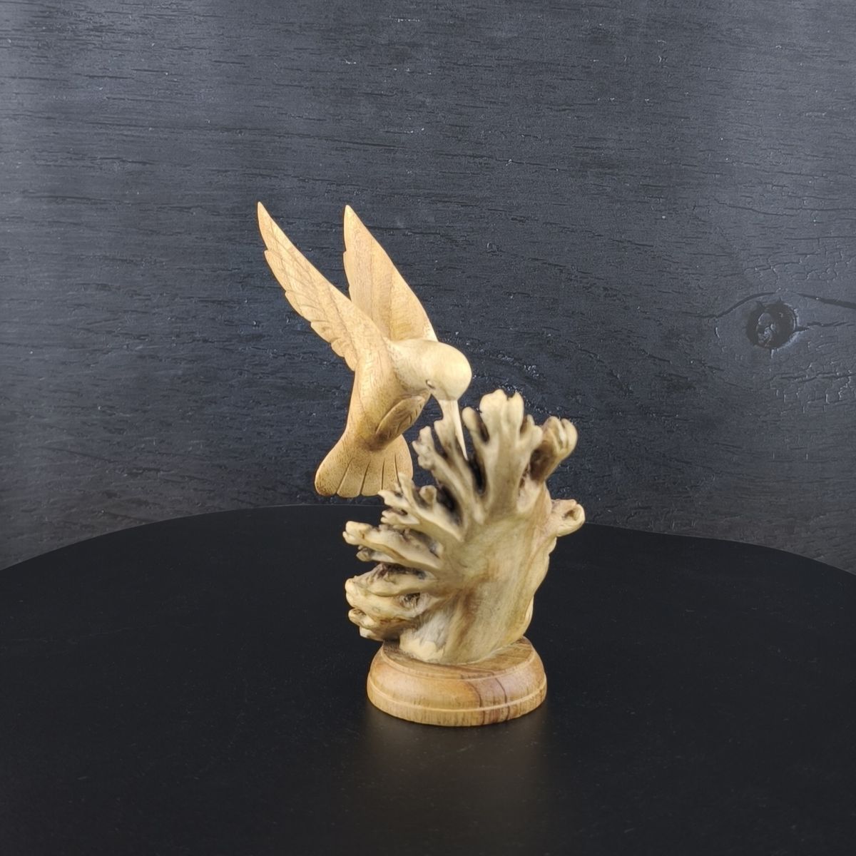 Jeder Holz-Kolibri ist ein kunstvolles Unikat, das deinem Zuhause eine elegante und natürliche Note verleiht.