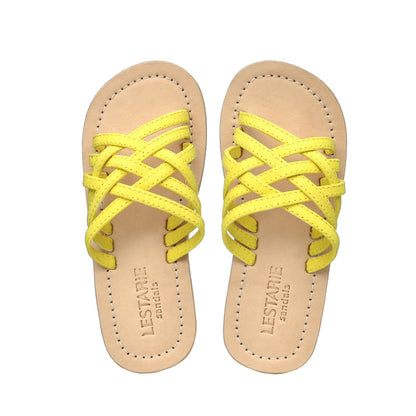Diese liebevoll handgefertigten Flipflops kombinieren hochwertiges Echtleder mit Riemchen aus robustem Canva-Material, das in einer großen Farbauswahl erhältlich ist.