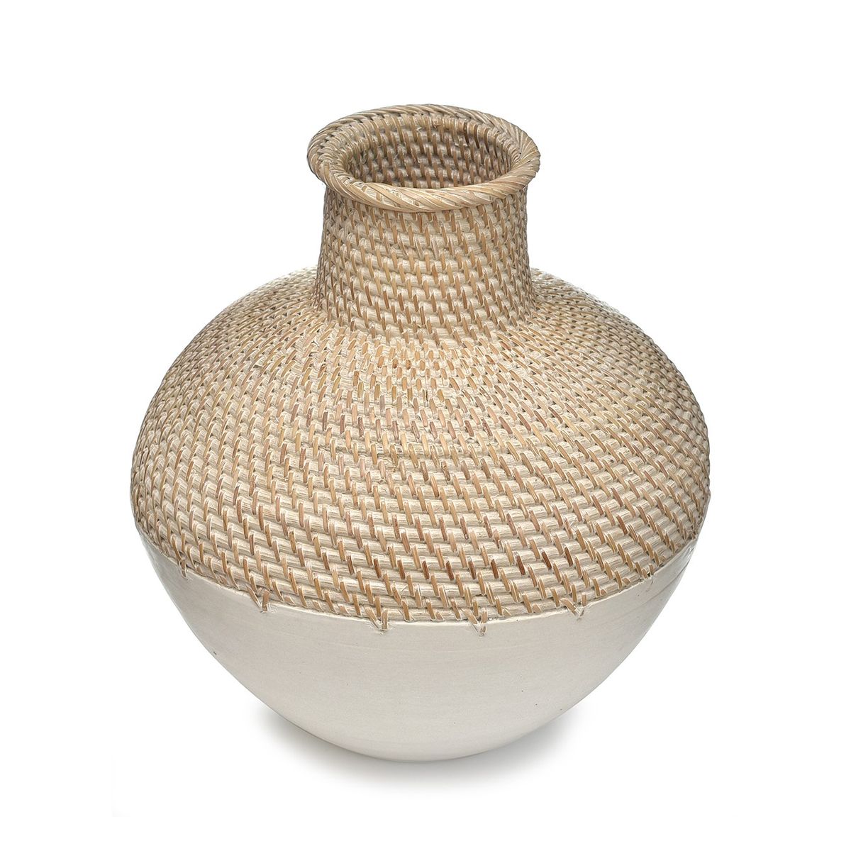 Elegante Rattan-Holzvase in Whitewash-Optik, 33 cm hoch.