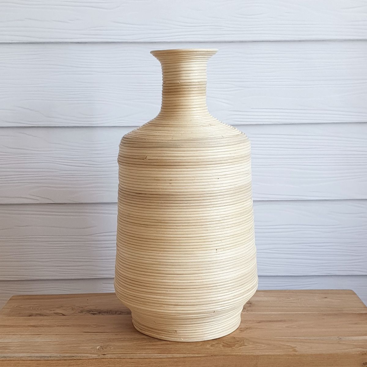 Unsere handgefertigte Rattanvase (Höhe 42 cm) bringt natürlichen Charme in dein Zuhause.
