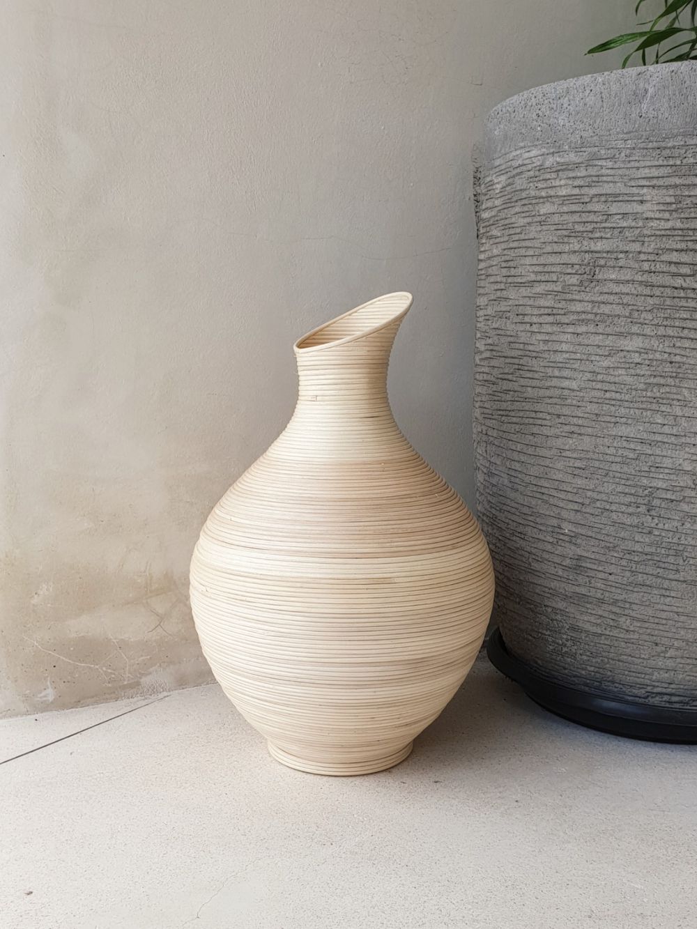 Diese elegante Rattanvase mit einer Höhe von 43 cm bringt natürliche Leichtigkeit und stilvolle Schlichtheit in dein Zuhause.