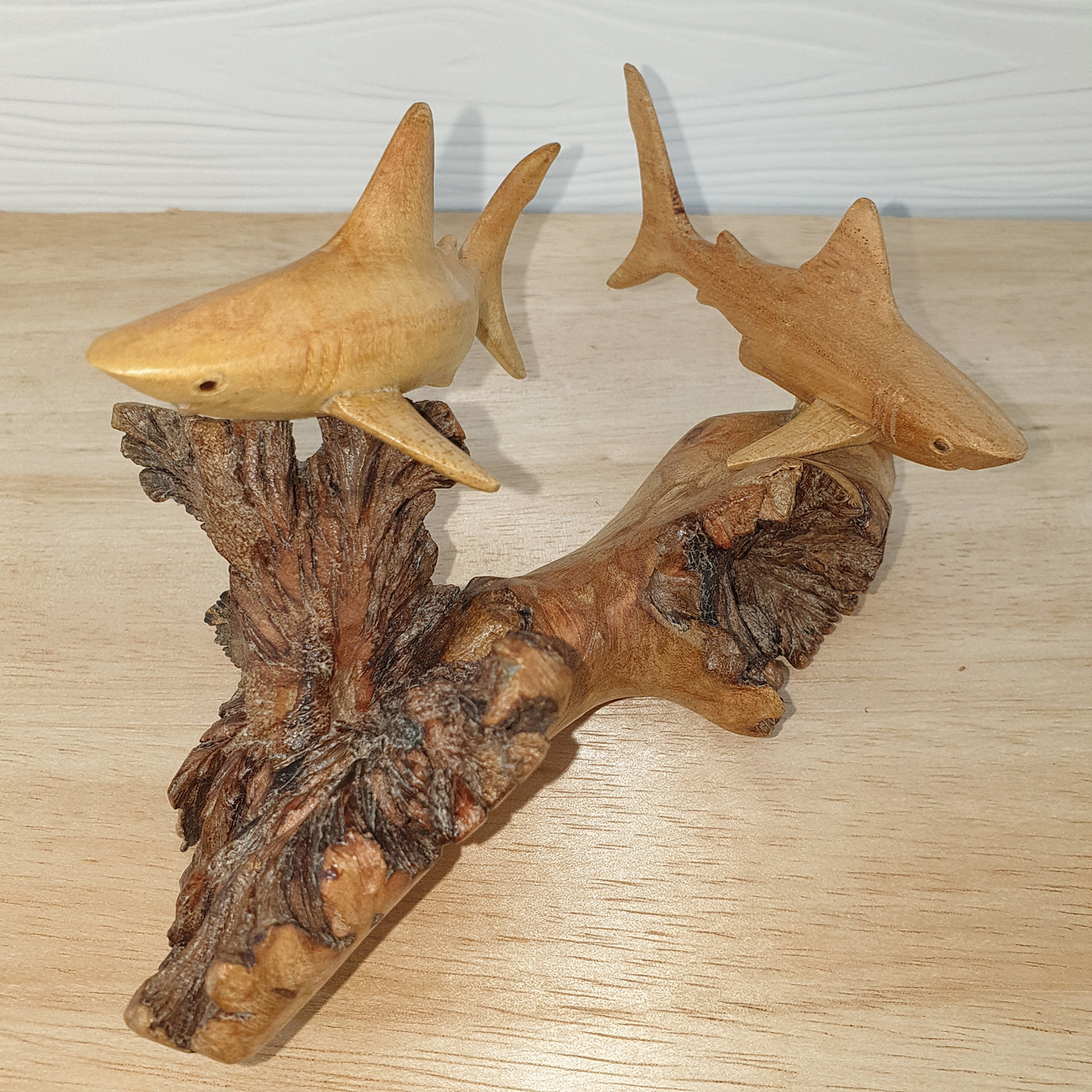 Zwei Riffhaie – handgeschnitzt mit Liebe zum Detail