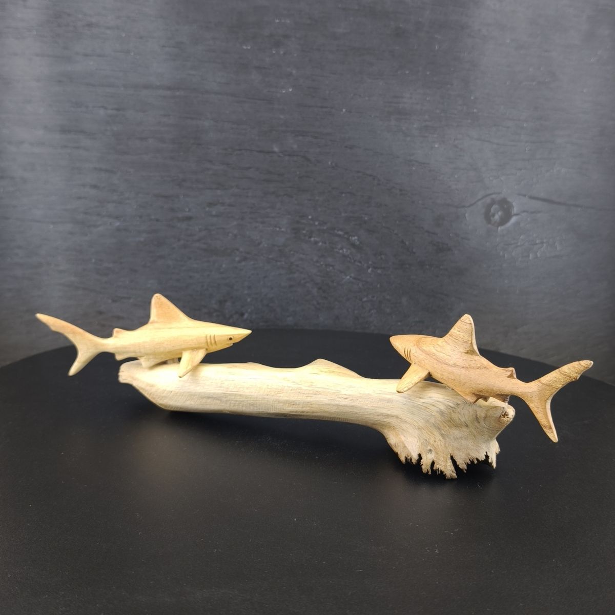 Zwei Riffhaie – handgeschnitzt mit Liebe zum Detail