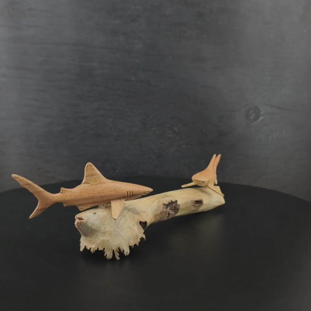Diese kunstvoll handgeschnitzten Riffhaie sind ein echtes Unikat für alle, die das Meer lieben.