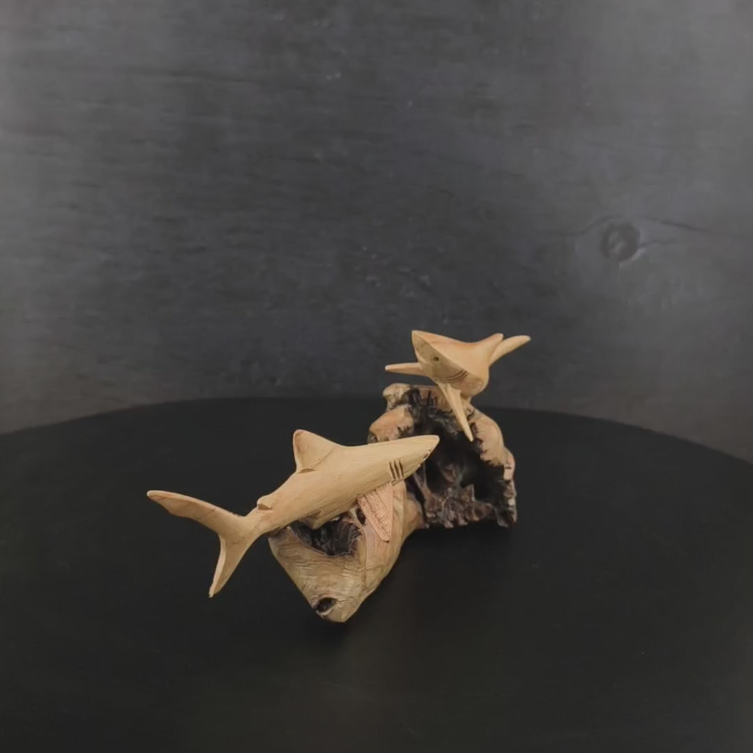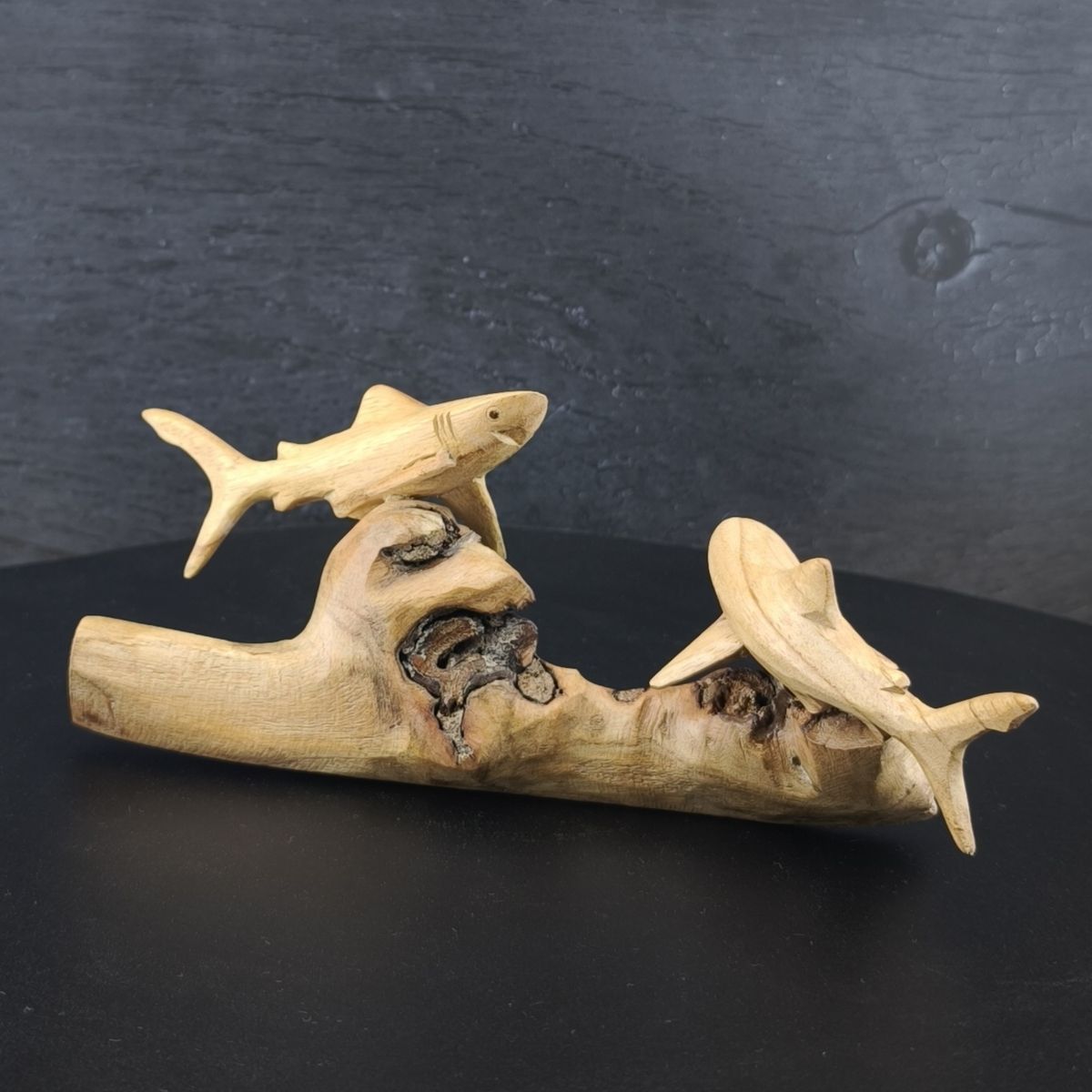 Diese kunstvoll handgeschnitzten Riffhaie sind ein echtes Unikat für alle, die das Meer lieben.