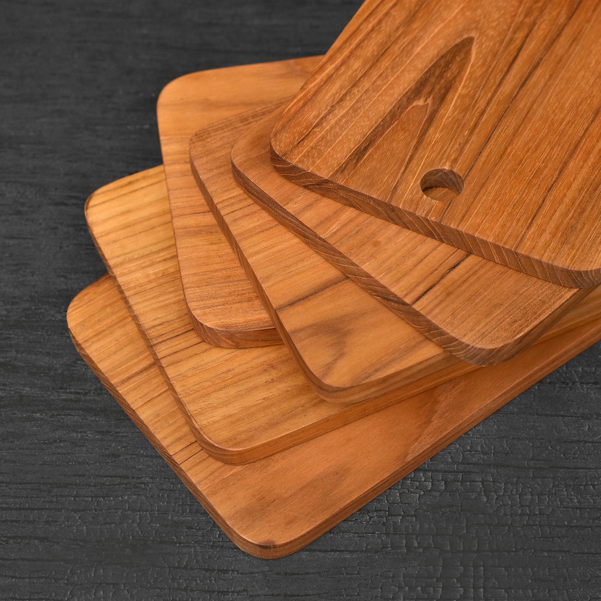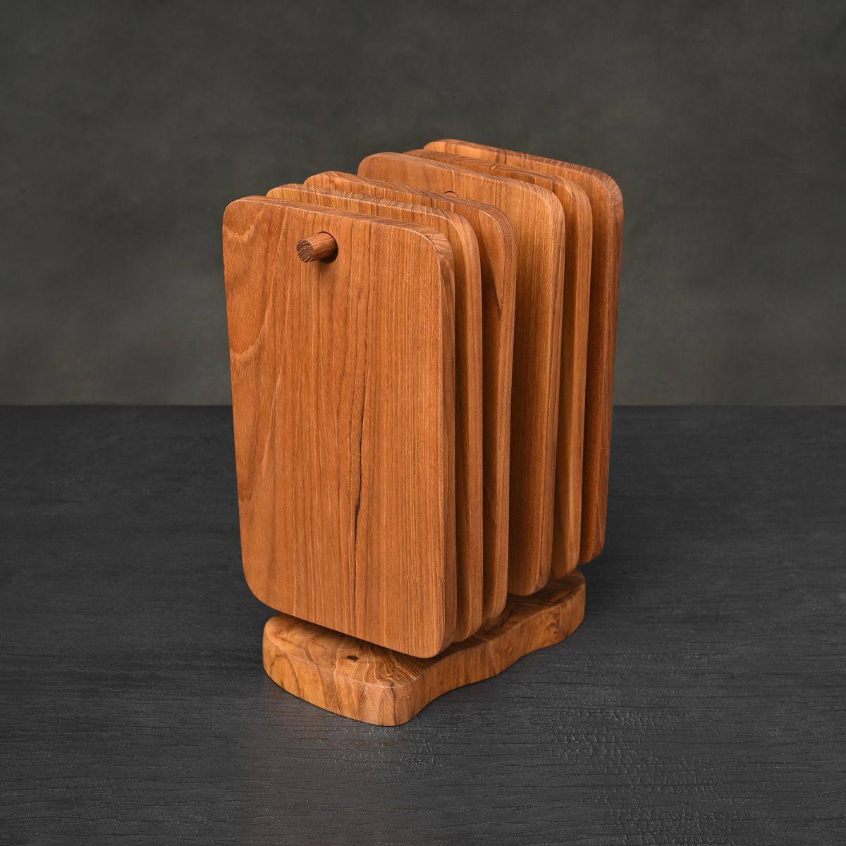 Praktisch, stilvoll und langlebig: Unser Set aus 6 Frühstücksbrettchen aus hochwertigem Teakholz mit passender Halterung bringt Ordnung und Natürlichkeit in Ihre Küche.