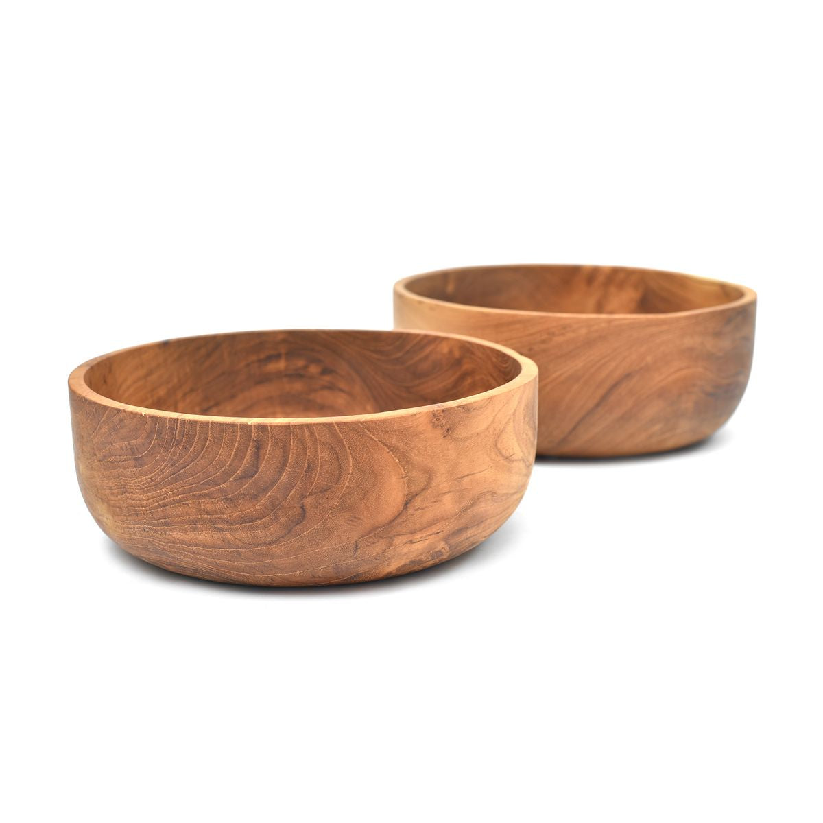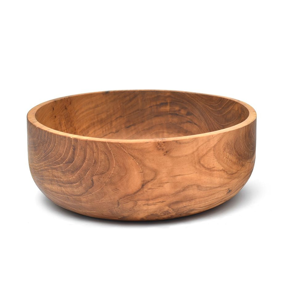 Das hochwertige Teakholz zeichnet sich durch seine markante Maserung und warme Farbnuancen aus, die jede Schale zu einem einzigartigen Unikat machen. Die glatte Oberfläche sorgt für eine einfache Pflege, während das robuste Holz Langlebigkeit garantiert.