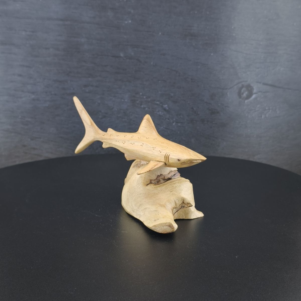 Deine handgeschnitzte Walhai Figur. Mit viel Liebe zum Detail aus hochwertigem Jempinisholz gefertigt und auf einem Parasitholz-Sockel befestigt, wird sie zu einem besonderen Blickfang in Deinem Zuhause.