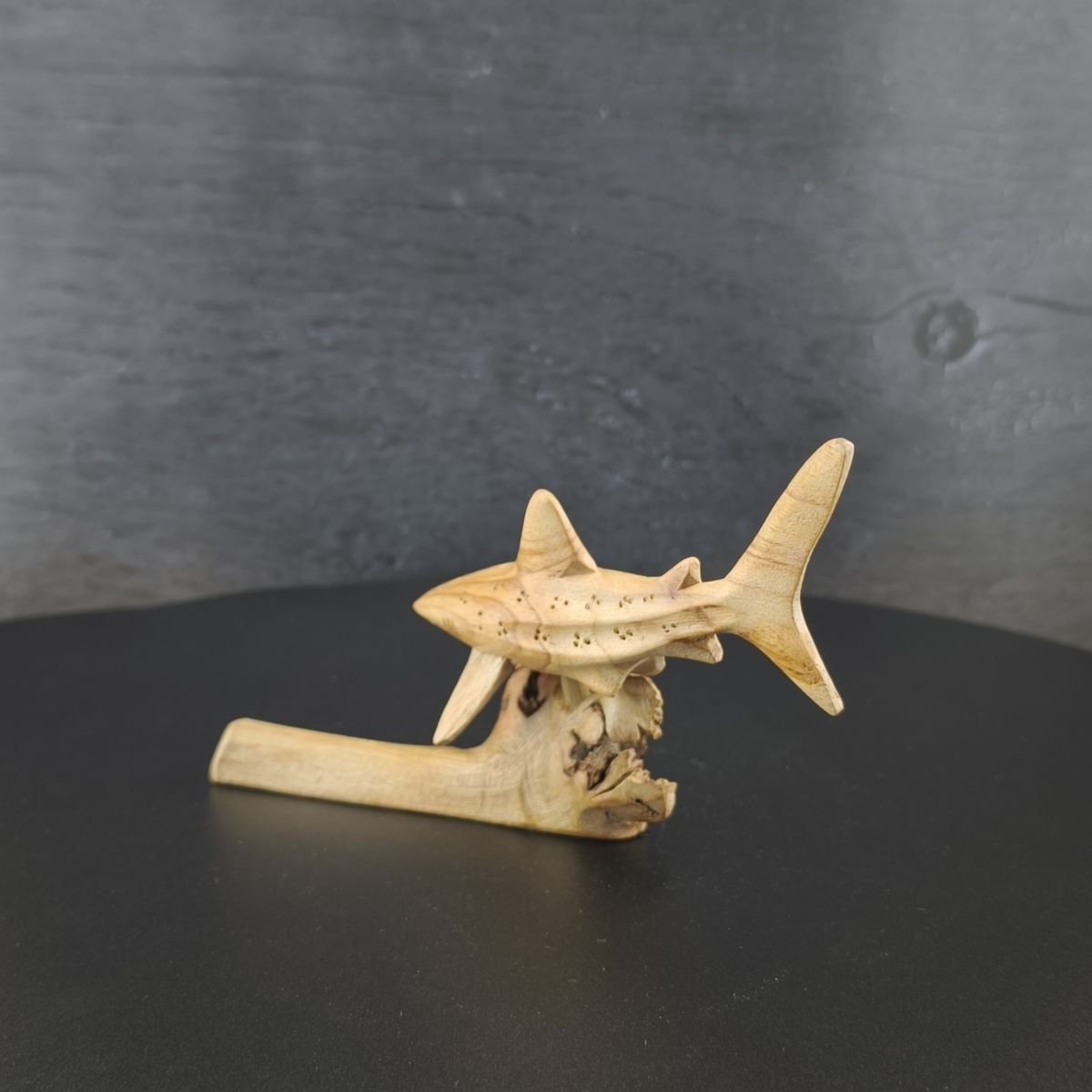 Deine handgeschnitzte Walhai Figur. Mit viel Liebe zum Detail aus hochwertigem Jempinisholz gefertigt und auf einem Parasitholz-Sockel befestigt, wird sie zu einem besonderen Blickfang in Deinem Zuhause.
