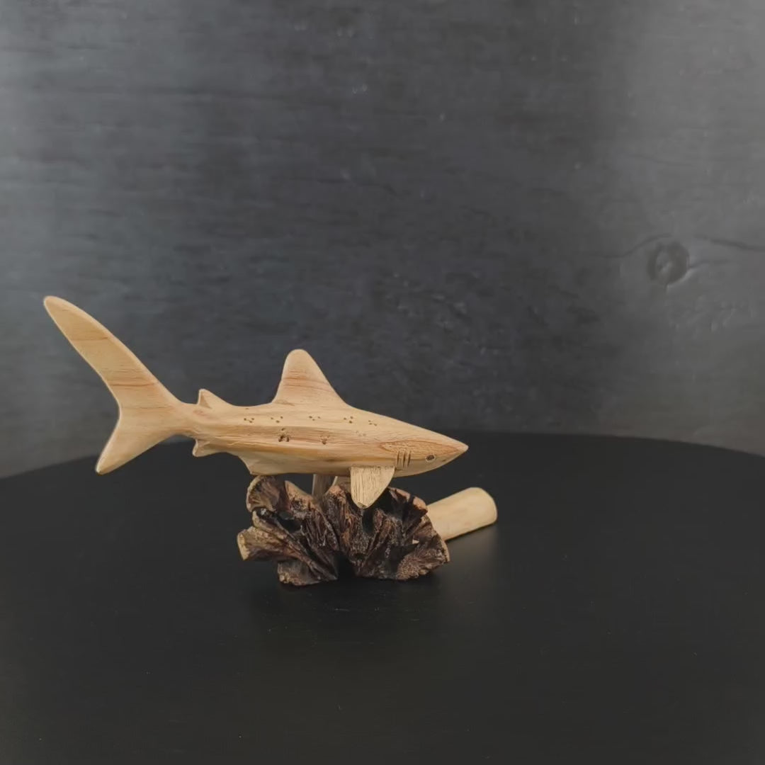Die Haifigur hat eine Länge von 15 cm, eine Breite von 7 cm und erreicht mit Sockel eine Gesamthöhe von 10 cm – ideal für Regal, Sideboard oder Schreibtisch. Jede Walhai Figur ist ein Unikat, das traditionelle Handwerkskunst mit maritimem Charme verbindet.